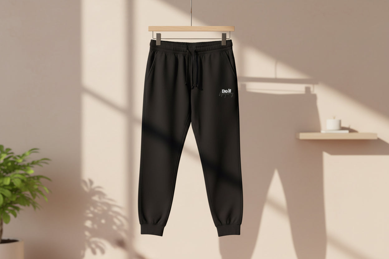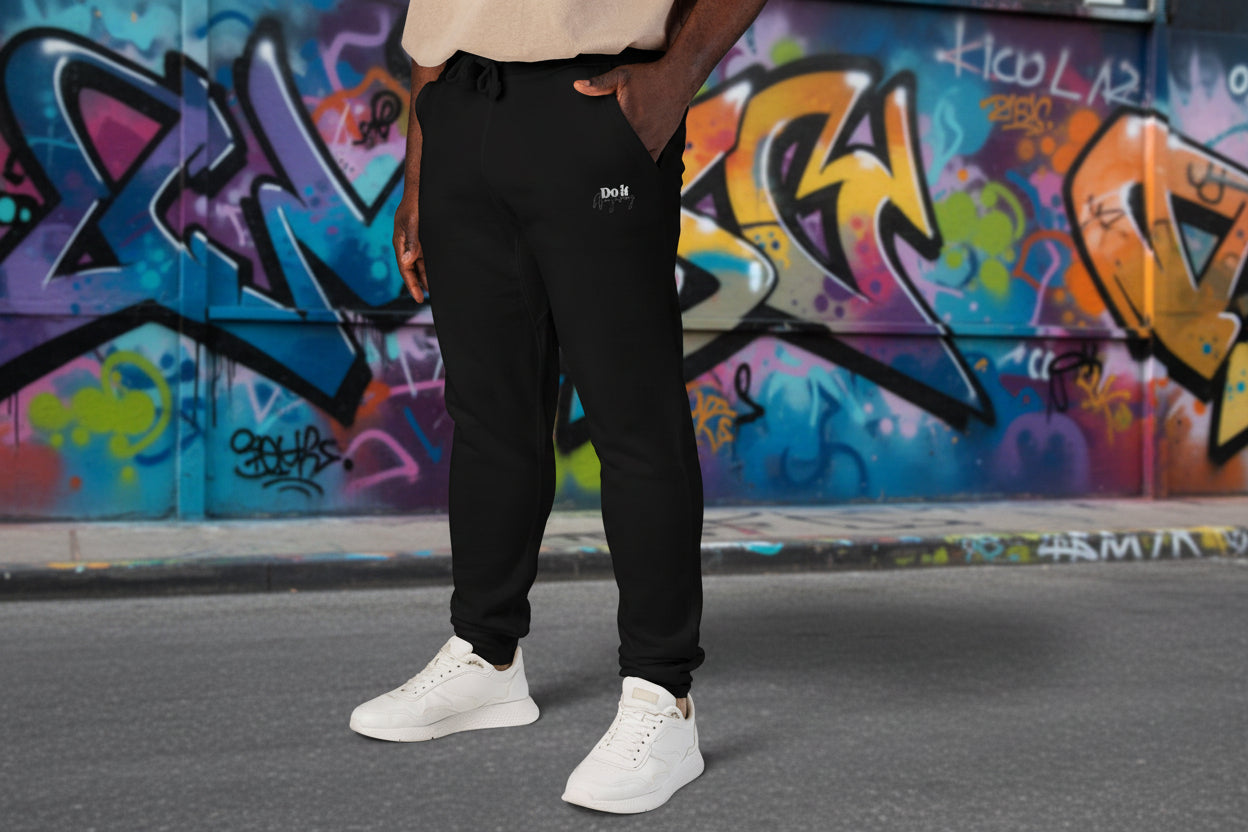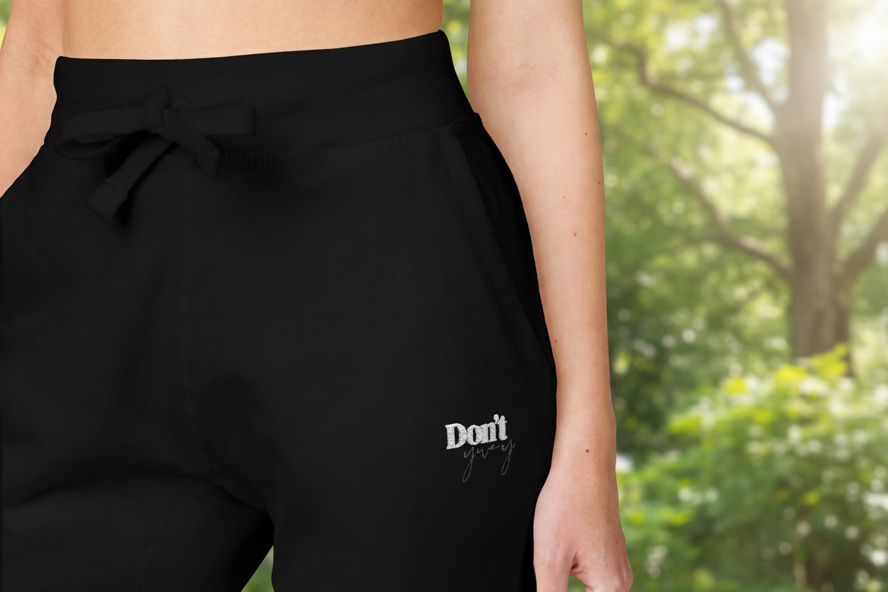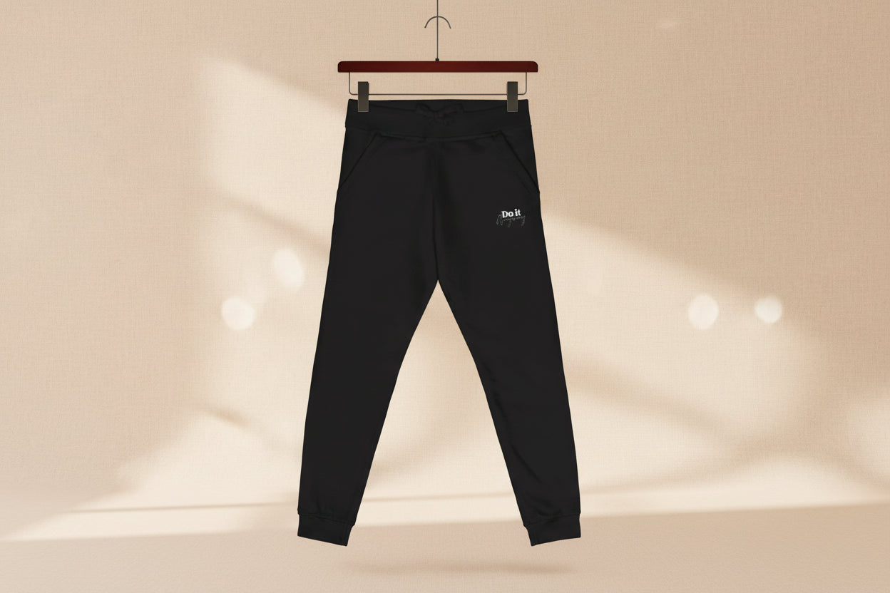 Embroidered Cozy Sweatpants — Minimal Logo Fleece Joggers