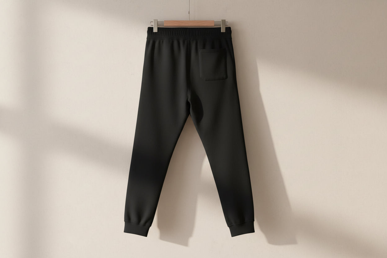 These fleece sweatpants bring quiet confidence to everyday wear. Soft, tightly knit fleece hugs the legs while ribbed cuffs and a gusset at the crotch keep movement smooth. The elastic waistband with flat drawstring and two roomy front pockets let you settle in and carry what you need. A stitched patch pocket on the back leg adds subtle utility and an embroidered detail gives a crafted, lived-in touch. Wear them for slow mornings, long walks, or low-key nights when comfort and clean lines matter most.